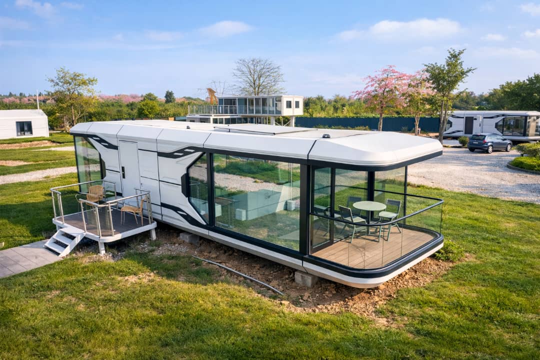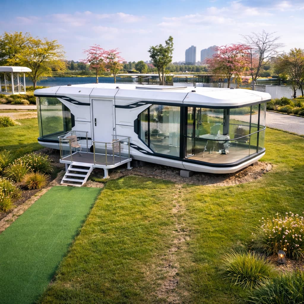 The modular capsule structure is designed for efficient transportation and installation. Units can be delivered fully assembled or in modular components for on-site assembly, depending on project requirements.